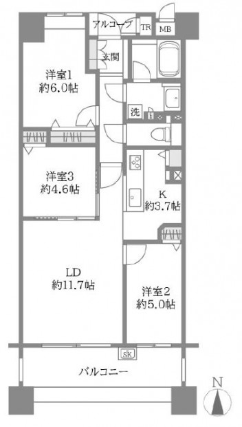- ■バルコニー面積 11.8m2(約3.6坪)